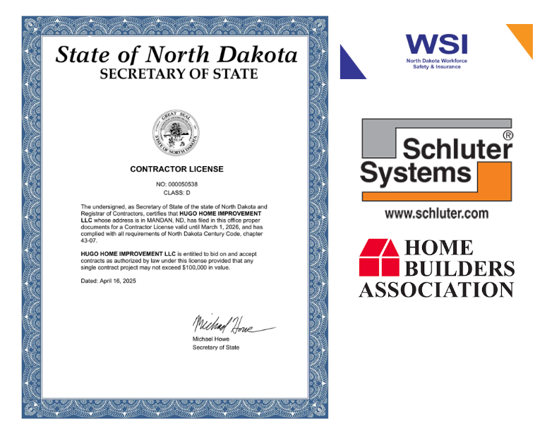 HHI is a trusted North Dakota contractor, backed by the licenses, certifications, and coverage needed to deliver professional, code compliant work.